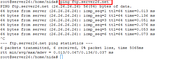 5. Melakukan restart dan percobaan ping ftp, contoh : ftp.server25.net